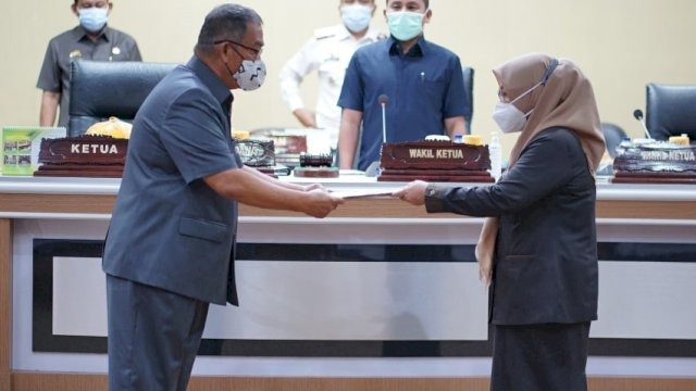 “Dengan Ucapan Alhamdulillahirobbol alamin, saya terima rancangan ini,” kata Ketua DPRD Parepare Andi Nurhatina Tipu.