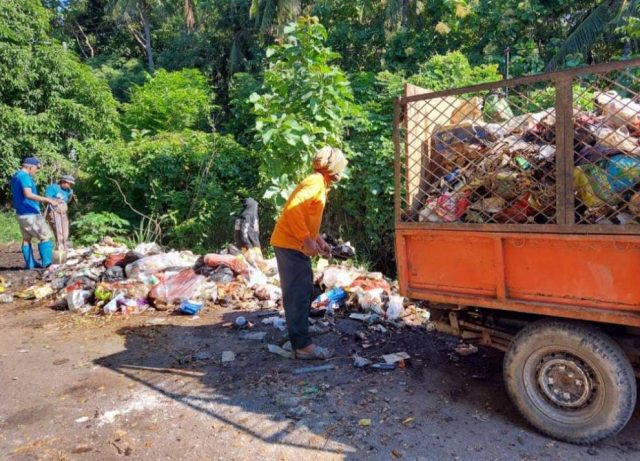 Sekretaris DLH Parepare, Budi Rusdi bersama petugas kebersihan melakukan peninjauan sekaligus mengangkut tumpukan sampah dari lokasi yang selama ini dijadikan warga sebagai tempat pembuangan sampah.