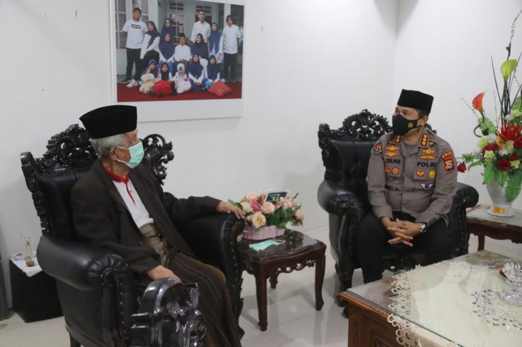MAKASSAR, SUARAJATAPPARENG.COM – Kabid Humas Polda Sulsel Kombes Pol E.Zulpan, S.i.k.,M.Si bersilaturrahmi ke Ketua Majelis Ulama Indonesia (MUI) Sulawesi Selatan Anre Gurutta (AGH), KH Sanusi Baco di Jalan Kelapa Tiga, Makassar, Selasa (23/2).