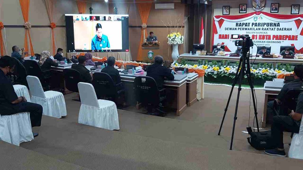 Hadir mendengarkan tanggapan fraksi-fraksi Wakil Wali Kota Parepare Pangerang Rahim mewakili Walikota, Sekda Iwan Asaad, para pimpinan SKPD, Camat, Lurah, serta para anggota DPRD.