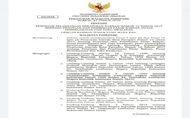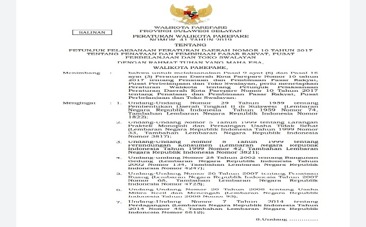 Pada Pasal 3 Perwali Nomor 41 Tahun 2019 berbunyi, lokasi pendirian toko swalayan wajib mengacu pada rencana tata ruang wilayah kota. Lokasi dan jumlah pendirian toko swalayan di Jalan Bau Massepe paling banyak 11 toko. (*Ps/AD).