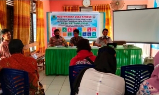 Sementara, Ketua Pokja Sahira yang sekaligus sekertaris Desa Wattang Pulu menyebutkan, telah menetapkan hasil pemutakhiran pendataan SDGs Desa. Hasilnya, pelakasnaan pendataan telah berhasil melakukan survey Desa, Rumah Tangga, Keluarga dan survey individu.