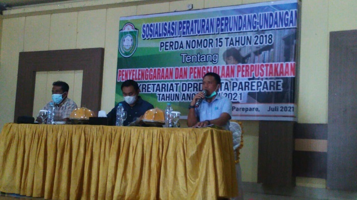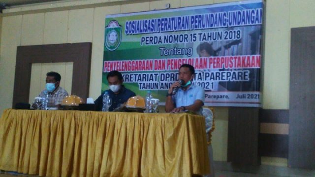PAREPARE, SUARAJATAPPARENG.COM – Anggota DPRD Kota Parepare dari Partai Hanura, Hermanto, melakukan sosialisasi terkait Perda Nomor 15 Tahun 2018 tentanh Penyelenggaraan dan Pengelolaan Perpustakaan, di Hotel Grand Kartika, Minggu (4/07/2021).