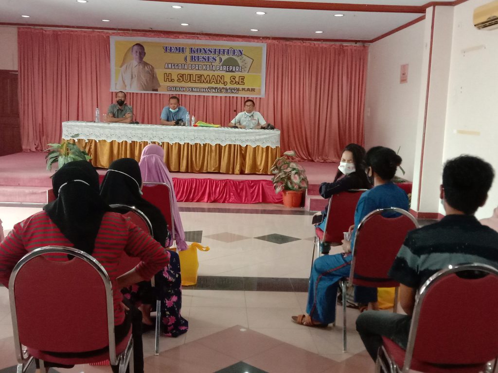 Berkaitan hal tersebut, anggota DPRD Parepare, H. Suleman, SE, melakukan temu konstituen dapil Kecmatan Ujung di Hotel Pariwisata, Minggu, (5/9/2021).
