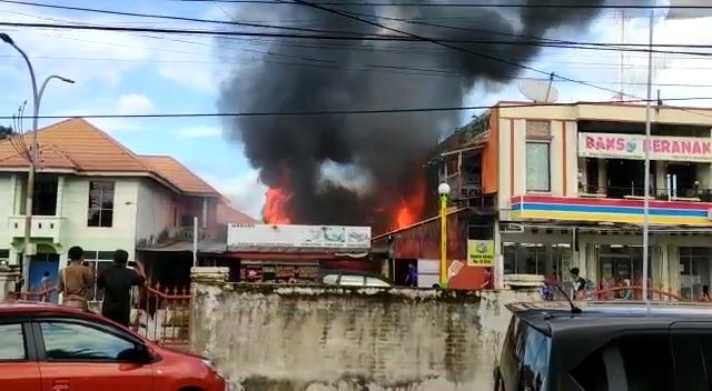 Menurut Syafruddin, api menyebar ke dalam warung yang berasal dari sebanyak 10 tabung gas yang diduga meledak.