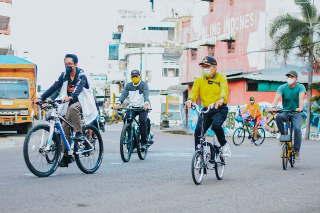 PAREPARE, SUARAJATAPPARENG. COM— Minggu, (3/10/2021) Walikota Parepare DR. HM. Taufan Pawe, didampingi Kepala Dinas Pemuda Dan Olahraga, yang juga menjabat Plt. Dinas Kominfo Parepare, Amarung Agung Hamka serta beberapa Kepala SKPD lainnya bersepeda santai sambil meninjau pelaksanaan pembangunan masjid terapung B.J.Habibie di Jalan Mattirotasi.