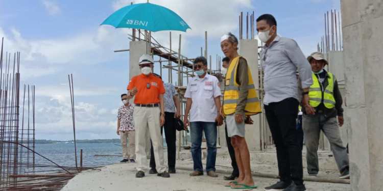 Di sela peninjauan, Taufan Pawe meyakinkan, progres terkini pembangunan Masjid Terapung BJ Habibie sudah mencapai 85 persen.