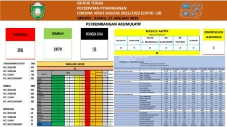 Data hingga 27 Januari 2022, dari total sasaran vaksin di Parepare 119.206 orang, yang sudah divaksin dosis 1, 94.575 atau 79,33 persen. Vaksin dosis 2, 72.937 orang atau 61,18 persen, dan vaksin dosis 3 untuk tenaga kesehatan 2.167 orang atau 79,75 persen. (*)