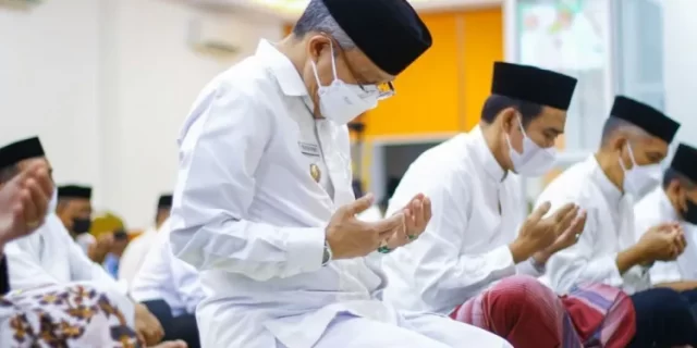 Wali Kota Parepare, Dr HM Taufan Pawe yang memimpin zikir dan doa bersama jajaran Pemkot Parepare, di Auditorium BJ Habibie, Rumah Jabatan Wali Kota Parepare, Kamis, 17 Februari 2022.