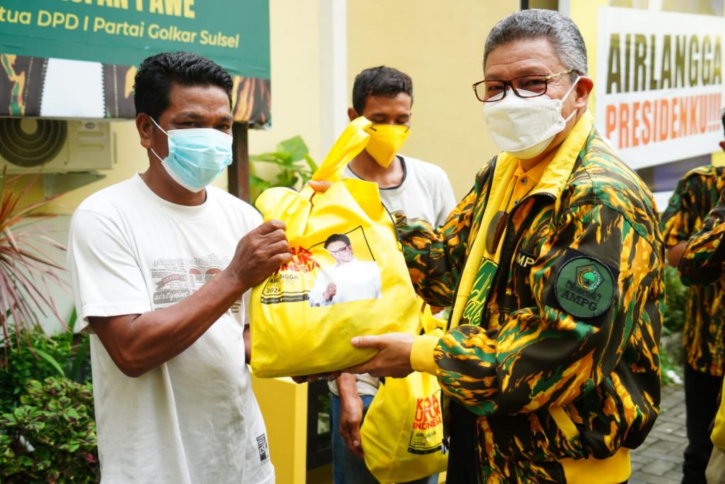 Sebelumnya, Ketua Golkar Sulsel, Taufan Pawe menyerahkan juga ratusan paket sembako seperti minyak goreng, beras dan gula pasir, saat perayaan HUT Ke-20 AMPG.