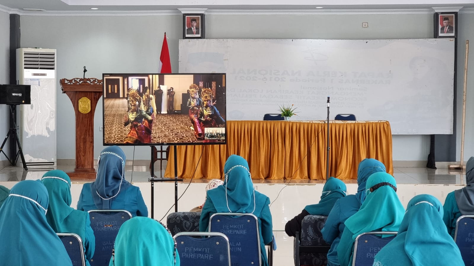 PAREPARE, SUARAJATAPPARENG. COM – Ketua Tim Penggerak PKK Kota Parepare, Hj Erna Rasyid Taufan, bersama perwakilan pengurus TP PKK tingkat Kota, Kecamatan dan Kelurahan mengikuti puncak peringatan Hari Kesatuan Gerak (HKG) PKK Ke-50 secara virtual yang digelar Gedung Balai Ainun Habibie, Selasa, (8/3/2022).