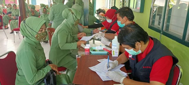 Bakti sosial donor darah dilaksanakan di Aula Makodim 1404/Pinrang dan dikuti oleh 75 Persit Kartika Chandra Kirana cabang XXIX dan 15 orang personel Kodim 1404/Pinrang. Kegiatan dilaksanakan dengan menerapkan protokol kesehatan secara ketat sehubungan saat ini pandemi covid 19 belum berakhir.