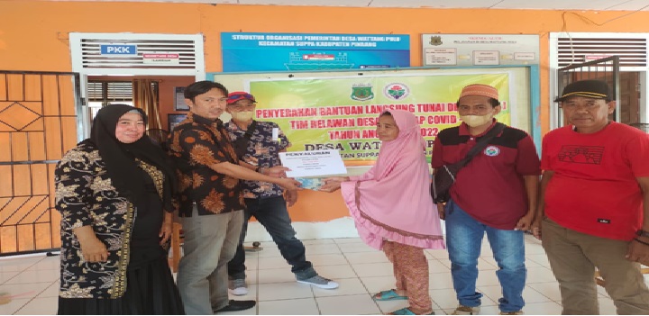 Pemerintahan Desa (Pemdes) Wattang Pulu Kecamatan Suppa,  melaksanakan penyaluran Bantuan Langsung Tunai Dana Desa (BLT-DD) di Aula Kantor Desa Wattang Pulu, Kamis (9/6/2022).