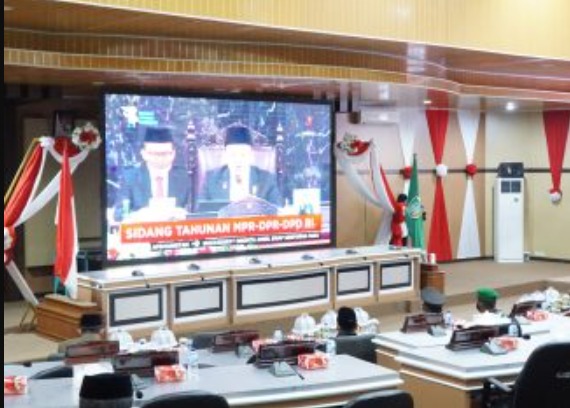 PAREPARE – Pemkot dan DPRD Parepare mengikuti pidato kenegaraan Presiden RI Joko Widodo secara virtual. Kegiatan itu berlangsung di Ruang Rapat Paripurna DPRD Parepare, Senin (16/8/2022).