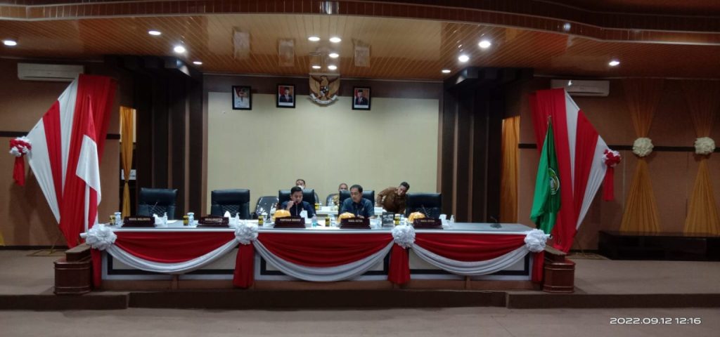 Rapat tersebut dipimpin oleh Wakil Ketua DPRD, Tasming Hamid dan didampingi oleh Wakil Ketua lainnya yakni M Rahmat Sjamsu Alam, menjerumuskan anggota DPRD yang terhormat.