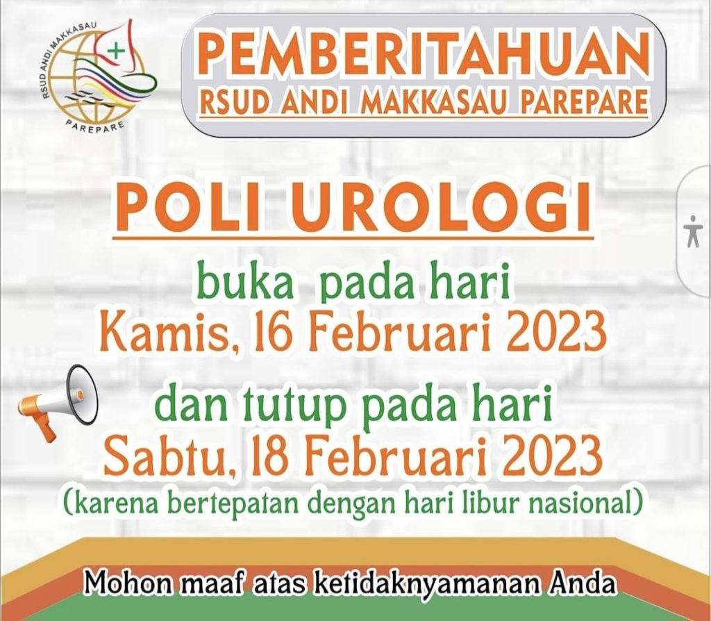 Manajemen Rumah Sakit Tipe B ini, menyampaikan perubahan jadwal pelayanan POLI UROLOGI, sebagai berikut :