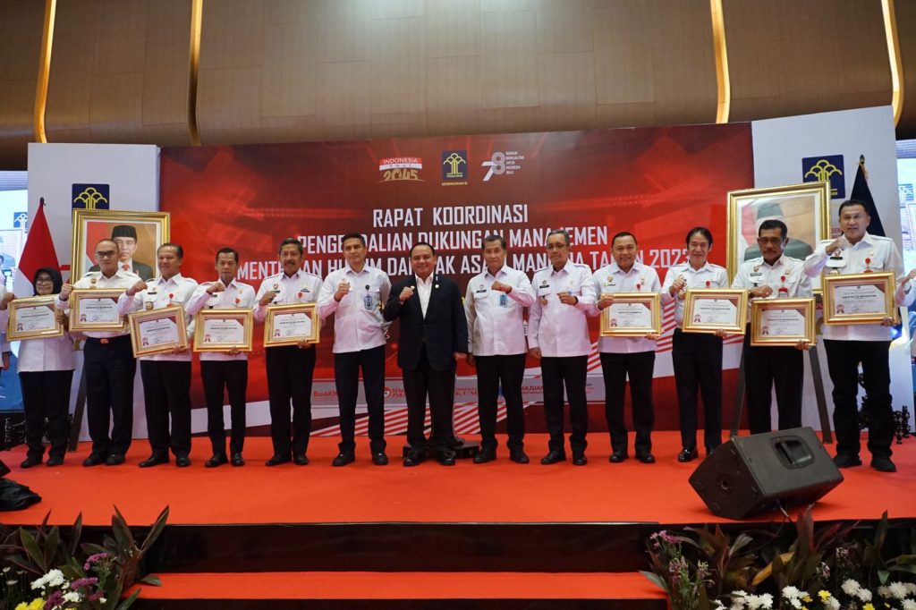 MAKASSAR, SUARA AJATAPPARENG – Kantor Wilayah Kementerian Hukum dan HAM Sulawesi Selatan terima penghargaan atas capaian kinerja tahun 2023. Penghargaan yang diterima yakni Kinerja Anggaran Terbaik Semester I dan Terbaik kedua Pengamanan Barang Milik Negara (BMN).