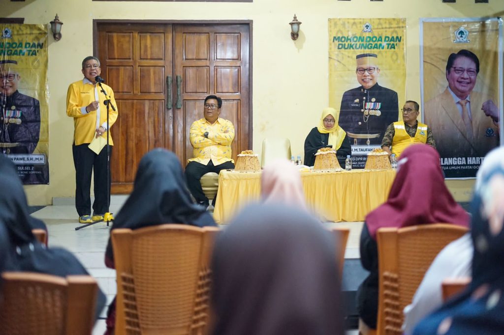 Taufan Pawe didampingi Ketua Ikatan Istri Partai Golkar (IIPG) Sulsel Erna Rasyid Taufan, serta turut dihadir kader Golkar seperti Ayu Andira, Andi Hamzah Pangki, Abu Thalib, dan Bahtiar.