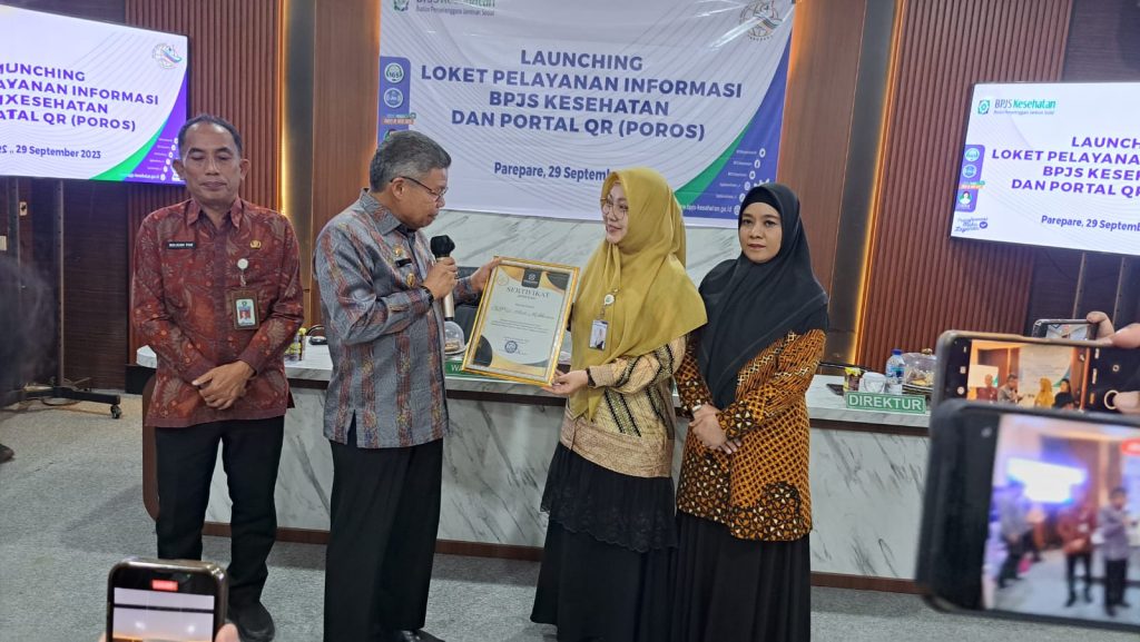 Penghargaan ini diserahkan langsung, Kepala Kantor BPJS Kesehatan Cabang Kota Parepare, Andi Rismaniswati Syaiful kepada Wali Kota Taufan Pawe, kemudian diserahkan ke Direktur RSUD Andi Makkasau Parepare dr Renny Anggraeni Sari, Jumat (29/9/2023).