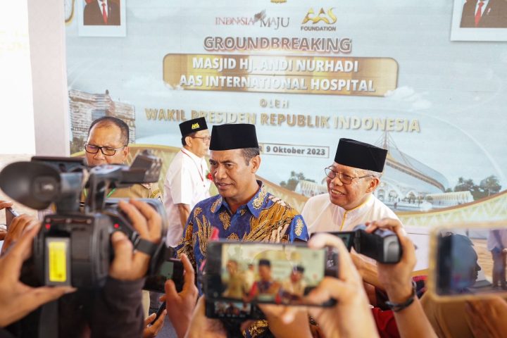 Bahkan, orang 02 Republik Indonesia (RI) itu datang khusus demi menghadiri Ground Breaking Pembangunan Masjid Hj Andi Nurhadi dan AAS International Hospital.
