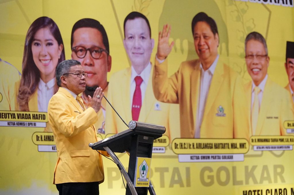 Sementara Ketua DPD I Partai Golkar Taufan Pawe mengatakan saat memberikan sambutan mengaku jika Golkar Sulsel siap menyonsong Pemilu 2024 mendatang.
