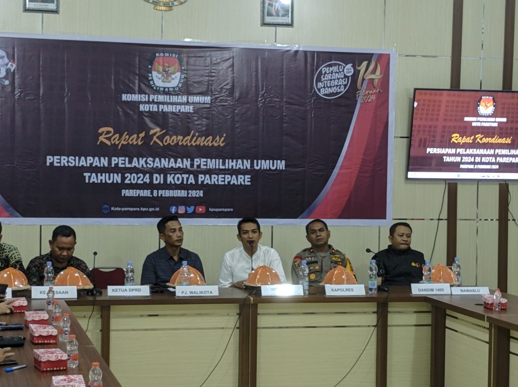 PAREPARE, SUARA AJATAPPARENG –Pemerintah Kota (Pemkot) dan Komisi Pemilihan Umum Parepare kembali rapat koordinasi persiapan Pemilu. Rapat koordinasi itu berlangsung di ruang media center KPU Parepare, Kamis (8/2/2024).