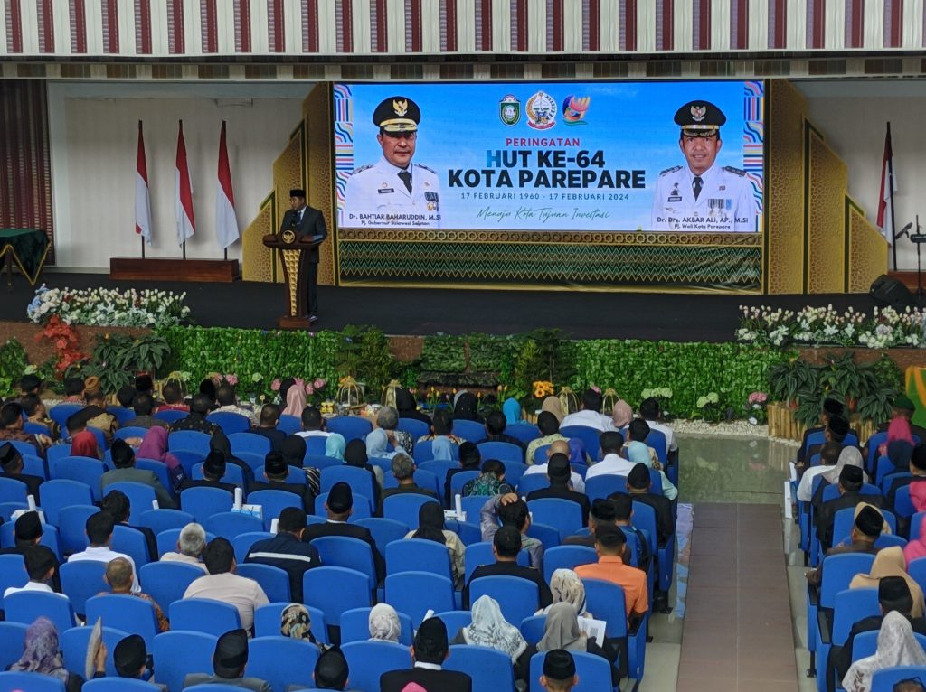 Kota Parepare genap berusia 64 tahun. Tahun ini Peringatan HUT ke-64 Parepare dipusatkan di Auditorium IAIN, Minggu 18 Februari 2024.