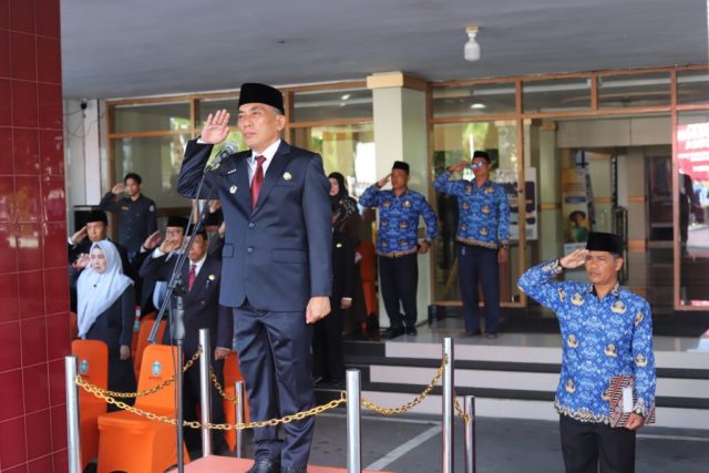 Husni membacakan sambutan seragam Menteri Dalam Negeri Muhammad Tito Karnavian, diikuti Aparatur Sipil Negara (ASN) lingkup Pemkot Parepare.