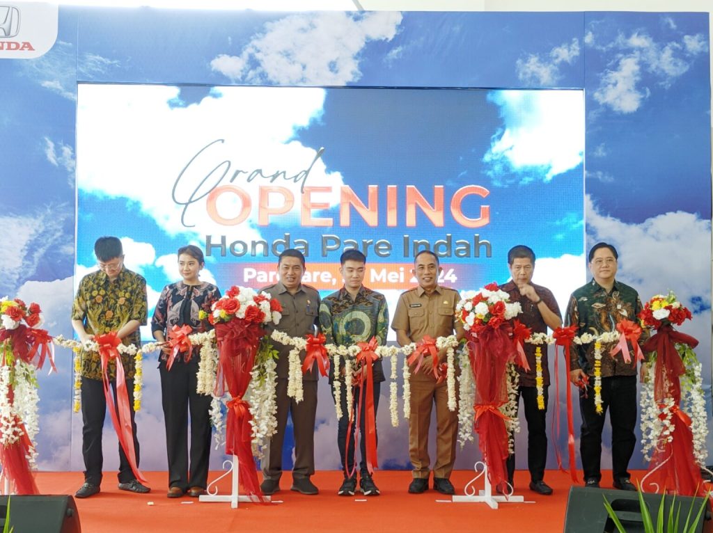 Grand Opening Honda Pare ini ditandai dengan pengguntingan pita oleh Sekda Parepare, Ketua DPRD Parepare Kaharuddin Kadir, bersama para petinggi PT Honda.