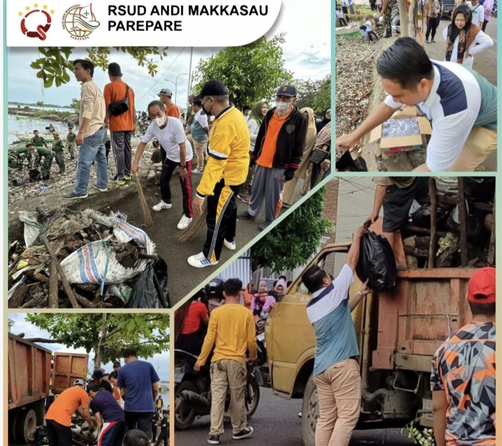 PAREPARE, SUARA AJATAPPARENG – Dalam rangka peringatan Hari Lingkungan Hidup Sedunia tahun 2024 Rumah Sakit Umum Daerah (RSUD) Andi Makkasau Kota Parepare dan gabungan dinas-dinas lainnya melaksanakan kerja bakti bersih pantai di sepanjang anjungan cempae kelurahan Watang Soreang Kota Parepare. Selasa, 4 Juni 2024.