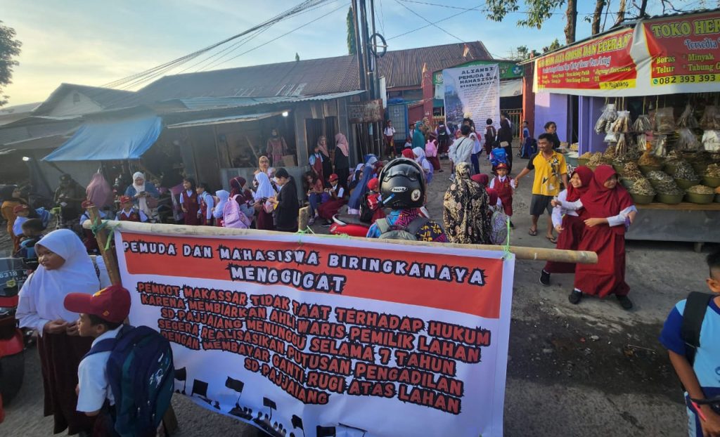 MAKASSAR, SUARA AJATAPPARENG – Setelah 7 Tahun tidak ada kejelasan penyelesaian Eksekusi SDN Pajjaian, akhirnya Aliansi Pemuda dan Mahasiswa Biringkanayya melakukan penutupan SDN Pajjaian Kota Makassar, Selasa, 16 Juli 2024.