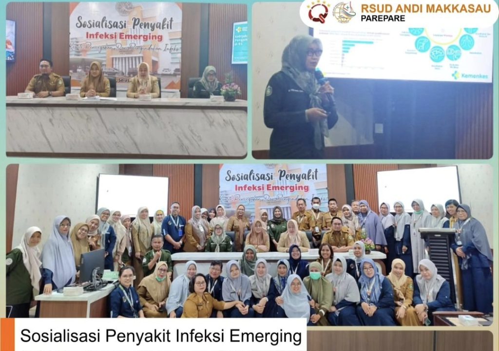 PAREPARE, SUARA AJATAPPARENG – Rumah Sakit Umum Daerah (RSUD) Andi Makkasau Kota Parepare Sebagai satu-satunya Rumah Sakit (RS) Pengampu PIE di Sulawesi Selatan, Komite Pencegahan dan Pengendalian Infeksi, melaksanakan sosialisasi Penyakit Infeksi Emerging (PIE) di aula RSUD Andi Makkasau, lantai dua. Selasa, 23 Juli 2024.