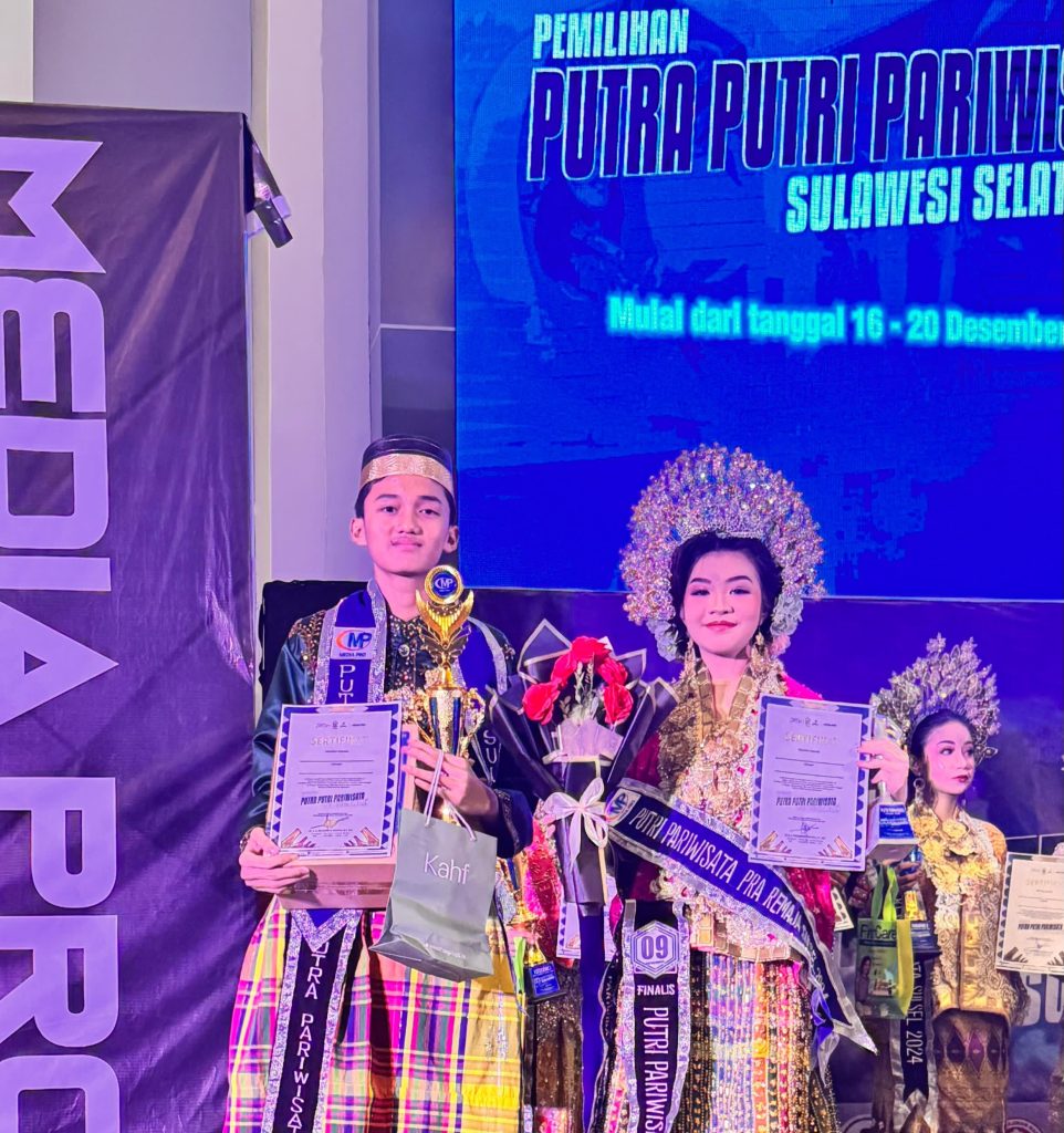 Andi Muhammad Yusuf Ibrahim, siswa SMP 2 kota parepare yang berumur 14 tahun mewakili Kota Parepare, yang mengikuti Tingkat Pra Remaja Pemilihan Putra-putri Pariwisata Sulawesi Selatan 2024 berhasil meraih Juara 1 Putra.