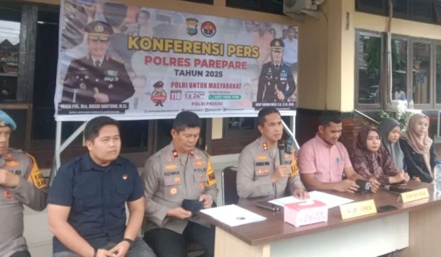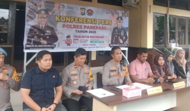 PAREPARE, SUARA AJATAPPARENG – Kapolres Parepare, AKBP Arman Muis, menggelar konferensi pers terkait meninggalnya seorang tahanan kasus narkoba berinisial MR, yang diduga tewas akibat penganiayaan oleh oknum polisi. Kegiatan ini berlangsung di Mapolres Parepare. Sabtu, 5 April 2025.