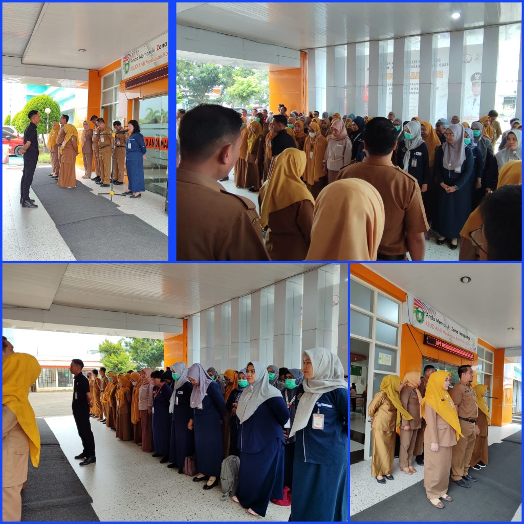 Hujan bukan hambatan. Apel pagi, dipimpin oleh Kepala Bagian Kepegawaian dan Administrasi, Ibu Suarni, S.Kep, Ns.