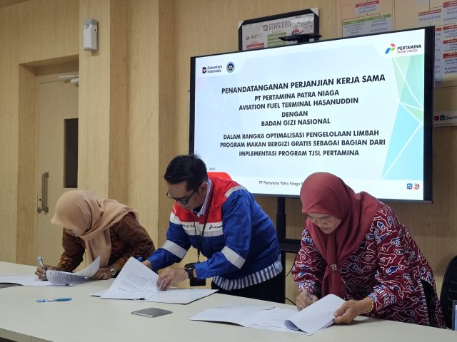 Langkah strategis ini ditandai dengan penandatanganan kerja sama antara AFT Hasanuddin dan Badan Gizi Nasional, yang dilaksanakan Jumat (18/7) di ruang rapat AFT Hasanuddin, Maros. Hadir dalam acara tersebut Aviation Fuel Terminal Manager Andreas Yanuar Arinawan, Direktur Wilayah III Badan Gizi Nasional Enny Indarty, S.STP, M.Si, Ketua Kelompok Ternak Laleng Kassie, Maryama, serta perwakilan manajemen Pertamina Patra Niaga.