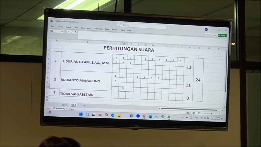 Dalam proses pemilihan yang berlangsung demokratis, H. Surianto meraih 13 suara sah dari total 24 suara Pengurus Provinsi (Pengprov) PSTI se-Indonesia. Pesaingnya, Rudianto Manurung, memperoleh 11 suara. Selisih tipis dua suara tersebut memastikan kelanjutan kepemimpinan Surianto di tubuh organisasi takraw nasional untuk lima tahun mendatang.