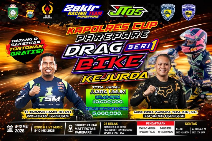 PAREPARE, SUARA AJATAPPARENG — Kota Parepare kembali dipercaya menjadi tuan rumah ajang otomotif bergengsi, Kejuaraan Daerah (Kejurda) Drag Bike Kapolres Cup Seri 1 yang akan digelar pada 9–10 Mei 2026 di Sirkuit Pantai Mattirotasi. Event ini tidak hanya menghadirkan kompetisi balap lurus 201 meter, tetapi juga diharapkan menjadi ruang pembinaan atlet sekaligus penggerak ekonomi masyarakat.